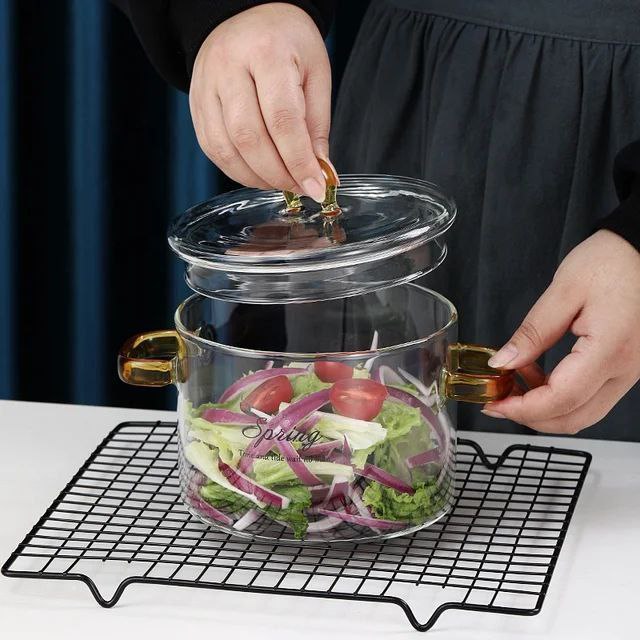 Fabriquée en verre transparent de haute qualité, cette casserole offre une visibilité totale pendant la cuisson, vous permettant de surveiller vos plats sans retirer le couvercle
