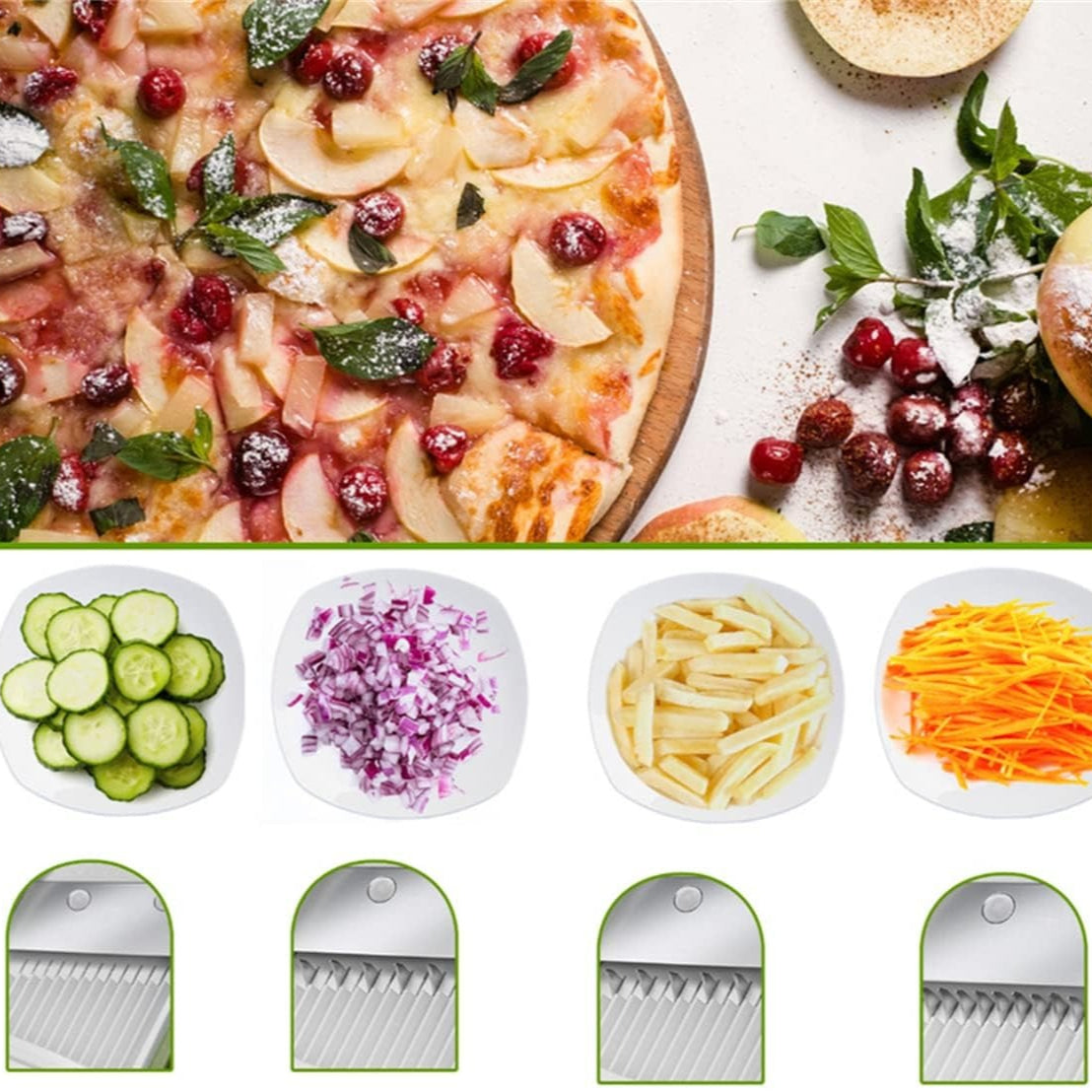 Ce coupe-légumes dispose de 4 tailles de lames différentes pour trancher et hacher facilement. Il offre la fonctionnalité de plusieurs ustensiles de cuisine dans un gadget très polyvalent. La lame en acier inoxydable de haute qualité permet de couper rapidement des pommes de terre, des concombres et des carottes en quelques secondes, vous faisant ainsi économiser beaucoup de temps.