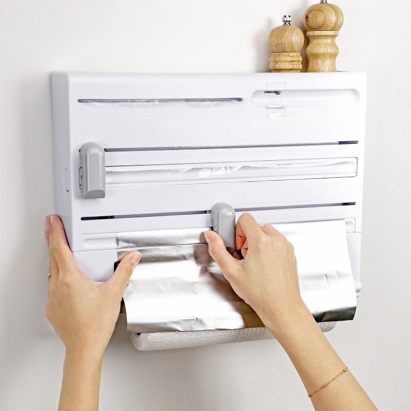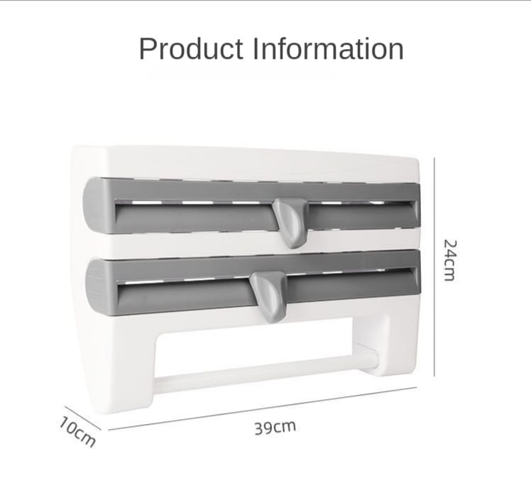 Ce support mural vous permet de ranger vos rouleaux de papier, film étirable et torchons, tout en gardant votre cuisine organisée et bien rangée.