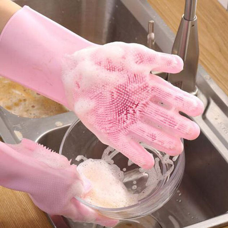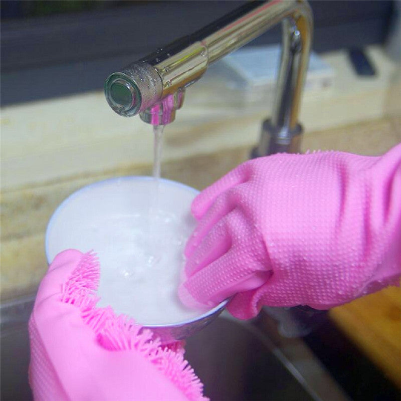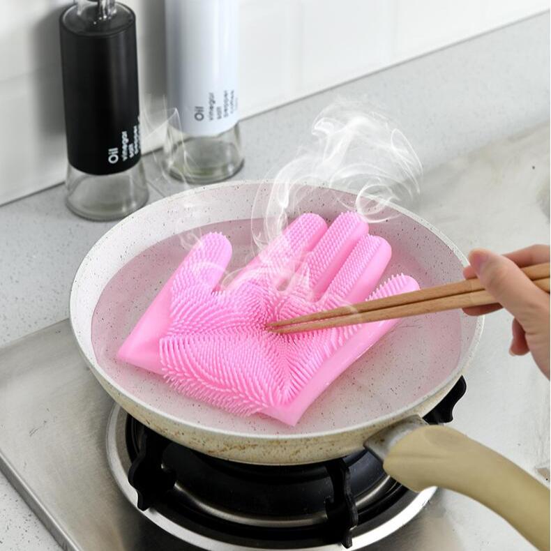 Plus besoin de brosses ou éponges séparées ! Enfilez les gants, ajoutez un peu de nettoyant, et commencez à laver la vaisselle, les fruits, les légumes, ou même à les utiliser comme gants de four.
