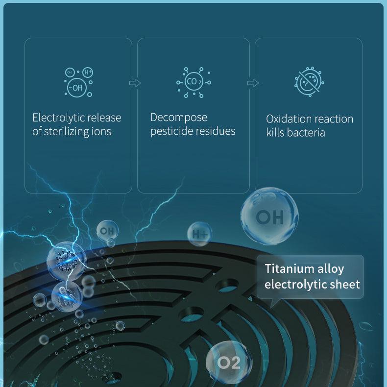 Une laveuse compacte et écologique qui utilise la technologie de purification de l'eau par ions hydroxyles pour nettoyer vos aliments sans produits chimiques, idéale pour préserver la santé de votre famille