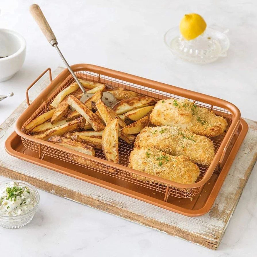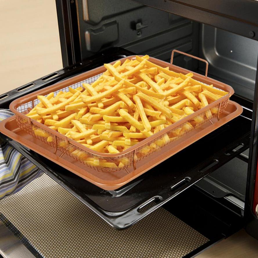 Le design du panier permet une circulation uniforme de la chaleur autour des aliments, sans besoin de les retourner