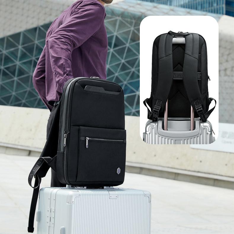 Dispose d'une sangle à l'arrière pour fixer le sac sur la poignée verticale d’une valise, facilitant son transport pendant les déplacements