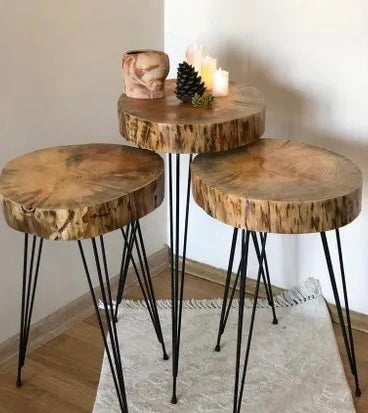 Table basse en bois massif pour enfants, chevet de lit, table à thé nordique, salon, meubles d'art, bûches vintage, petit tabouret, simplicité