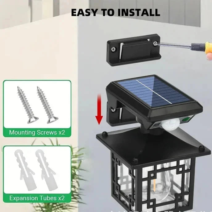 L'installation de la lampe de rue solaire est simple : il suffit de la fixer au mur avec des vis, ce qui en fait une solution d'éclairage accessible pour divers environnements extérieurs
