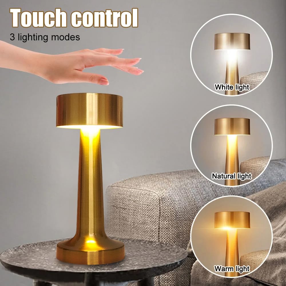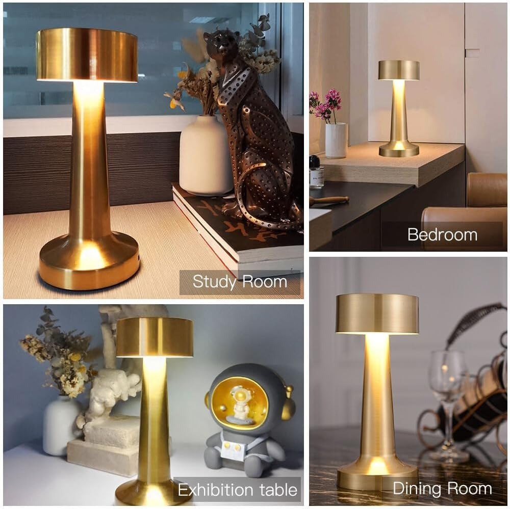 Caractéristique Matériel: fer + acrylique Processus: galvanoplastie Source de lumière: perles de lampe à économie d'énergie LED batterie au Lithium Autonomie de la batterie: plus de 15 heures après 5 heures de charge Commutateur: gradation à trois vitesses de contact supérieur Tension d'entrée: AC100-240V 50/60Hz Sortie: 5V 1A Le forfait comprend 1 x lampe à poser sans fil 1 x câble USB