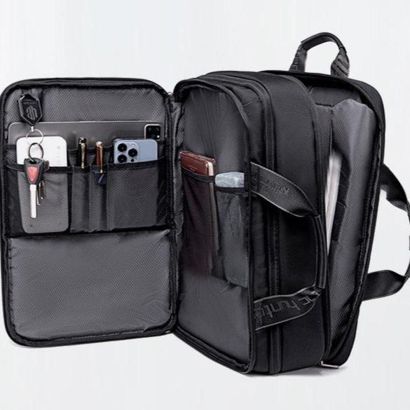 Dispose d'une sangle à l'arrière pour fixer le sac sur la poignée verticale d’une valise, facilitant son transport pendant les déplacements