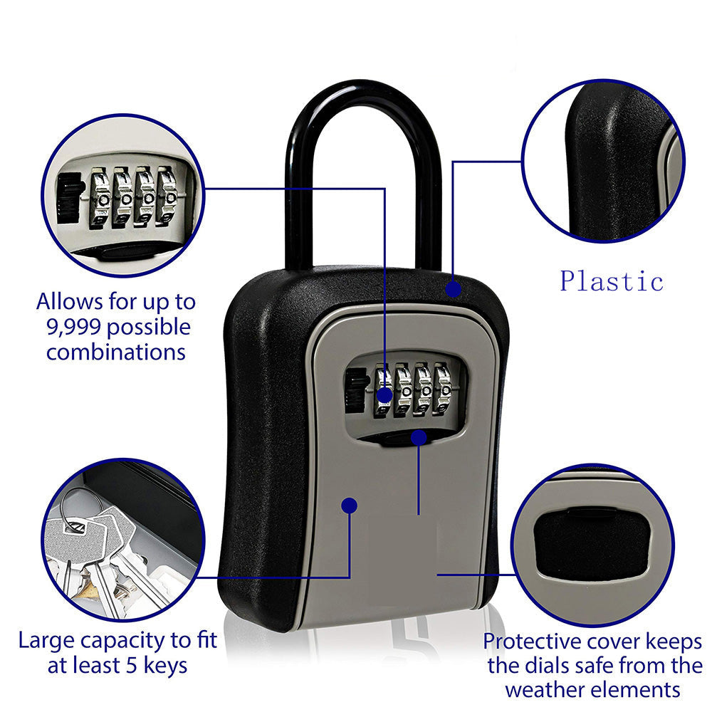 La serrure à combinaison à 4 chiffres offre jusqu'à 10 000 combinaisons possibles, garantissant un niveau de sécurité élevé pour vos clés et objets précieux. Vous pouvez ainsi avoir l'esprit tranquille en sachant que vos clés sont en sécurité