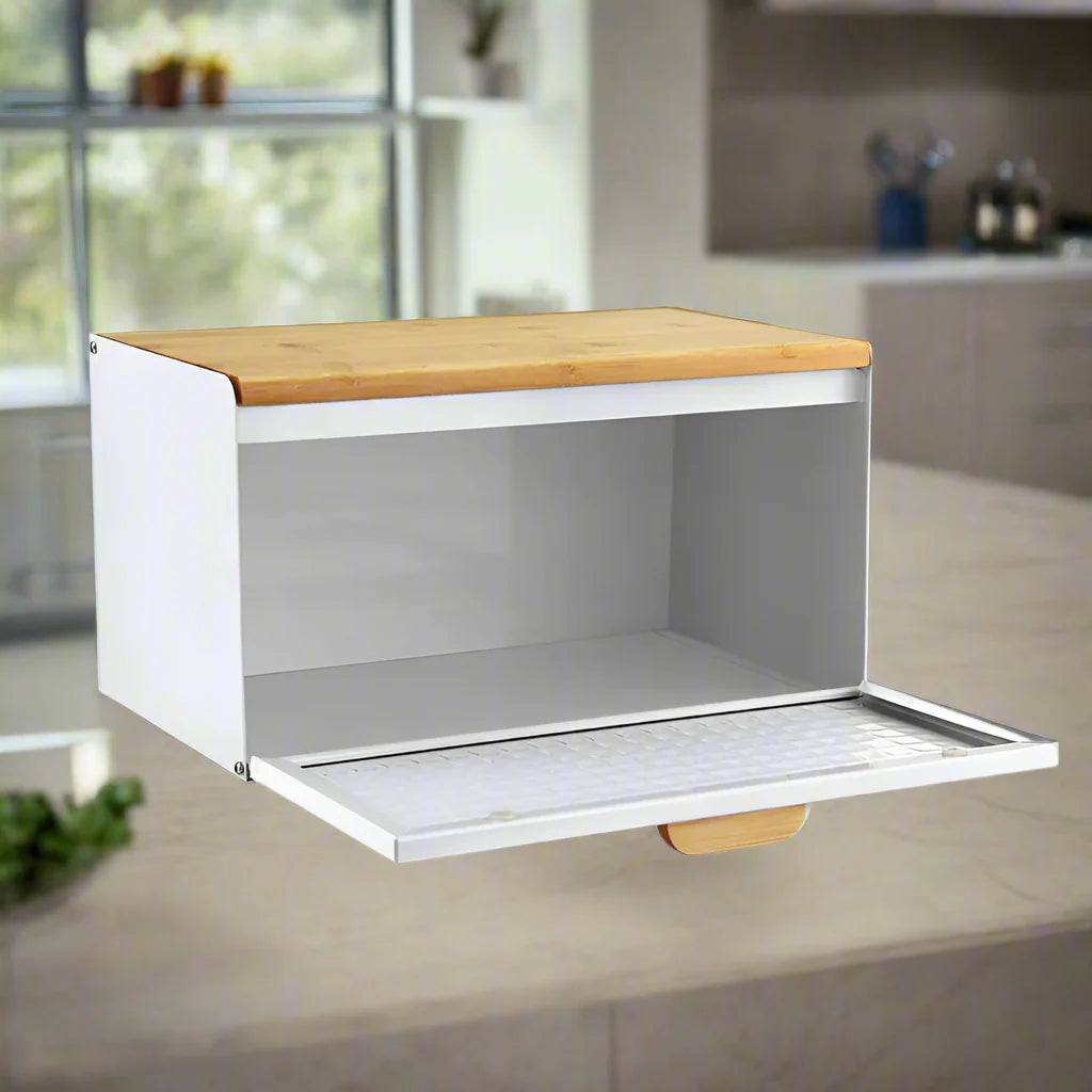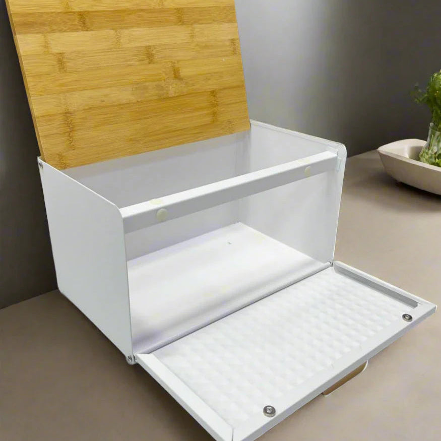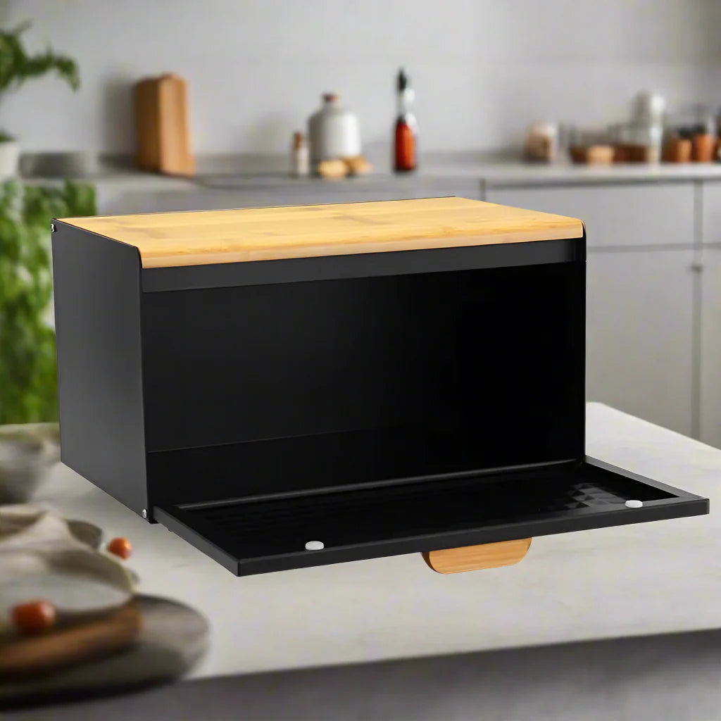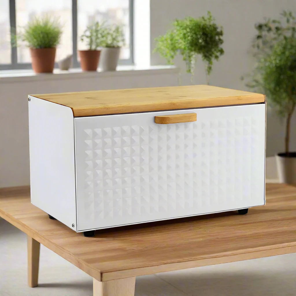 Cette boîte à pain élégante est conçue pour garder vos aliments fraisplus longtemps. Lemétal revêtuprotège de l’humidité tandis que lecouvercle en bamboupeut aussi servir de planche à découper 🥖🔪.