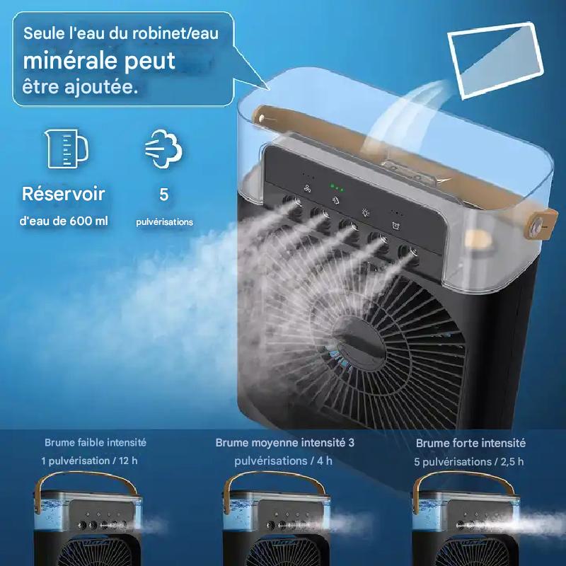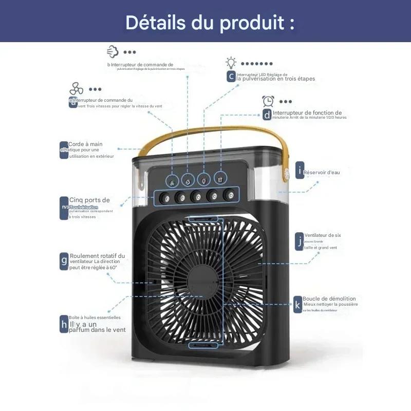 Utilisable comme ventilateur de bureau, humidificateur à vapeur froide ou mini climatiseur. Un appareil 3-en-1 parfait pour votre confort quotidien.