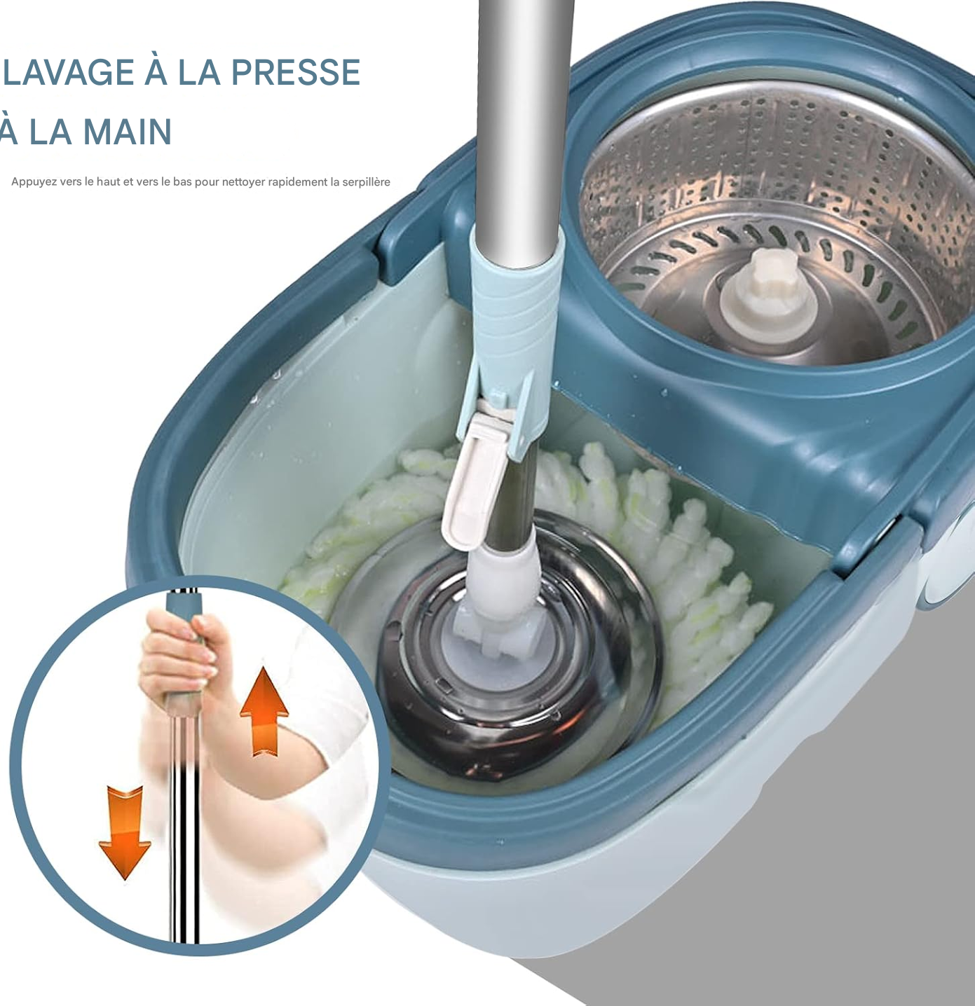 Nettoyez et essorez en un seul geste ! Appuyez sur la vadrouille pour un lavage rapide, puis utilisez le tambour pour un essorage efficace.Gagnez du temps et de l'énergie