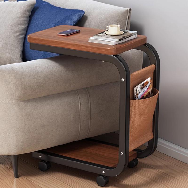 Conception en forme de U avec roulettes pivotantes, permettant de glisser facilement la table sous le canapé ou le lit pour un confort optimal.