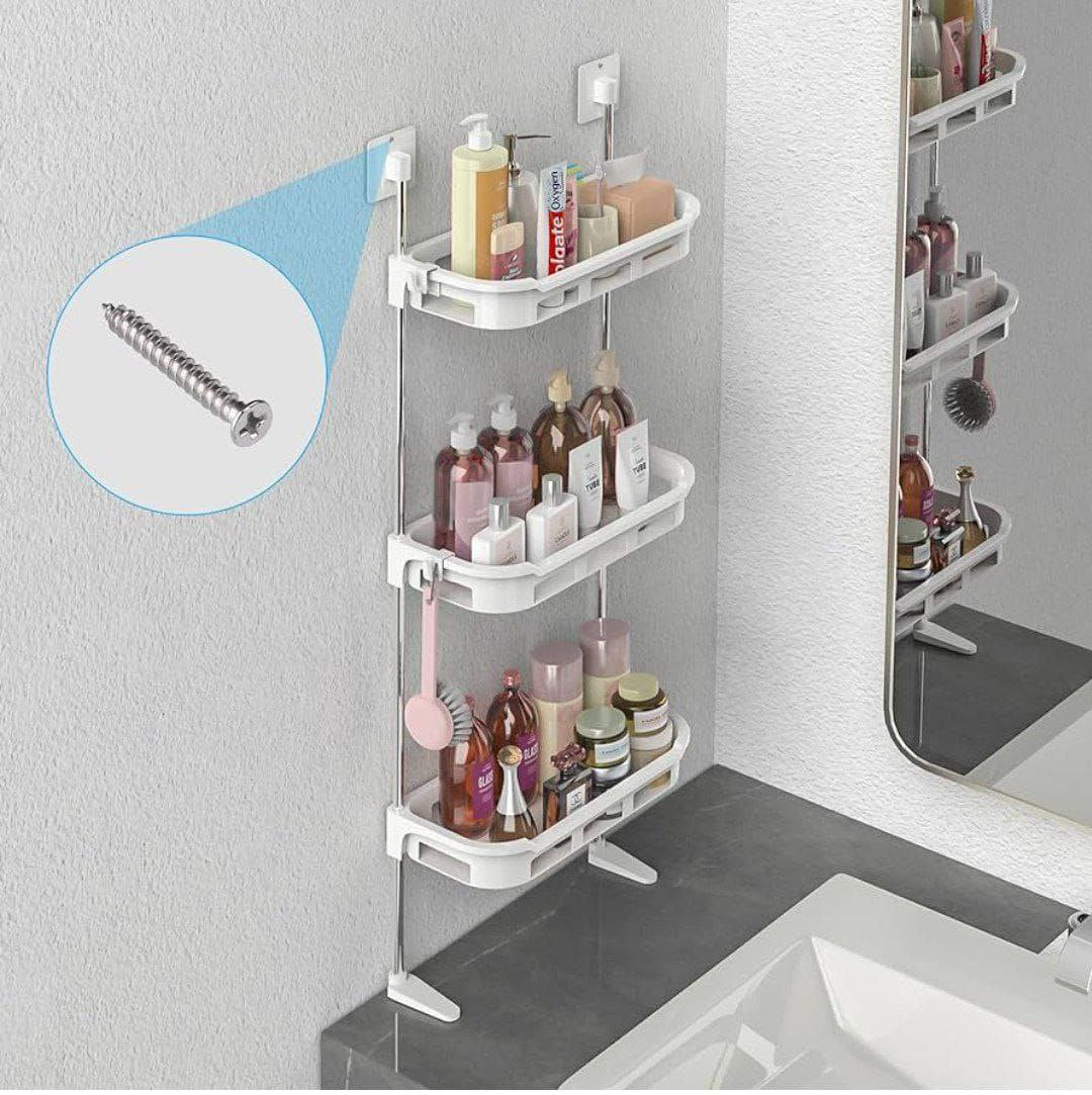 Étagère Murale 3 Niveaux pour Toilettes avec Crochets
