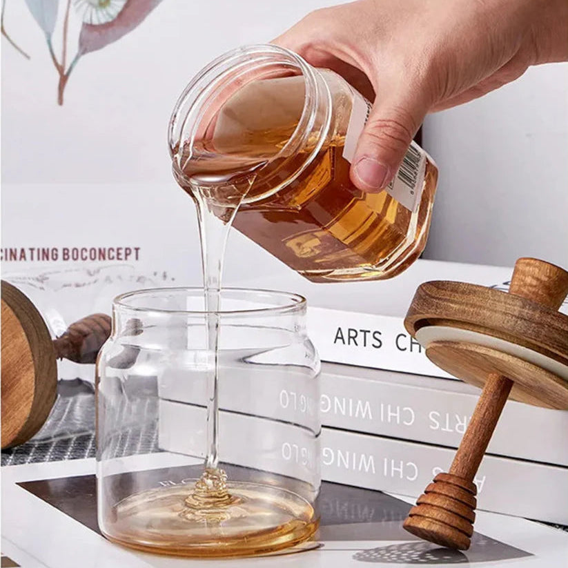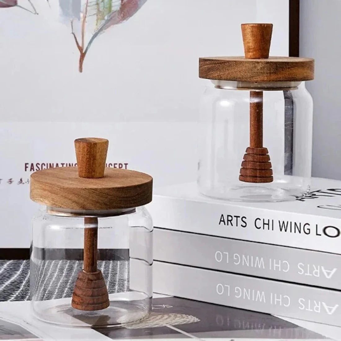 🍯 Inttox – Pots de miel en verre avec couvercle en bois & tige d’agitation 🐝