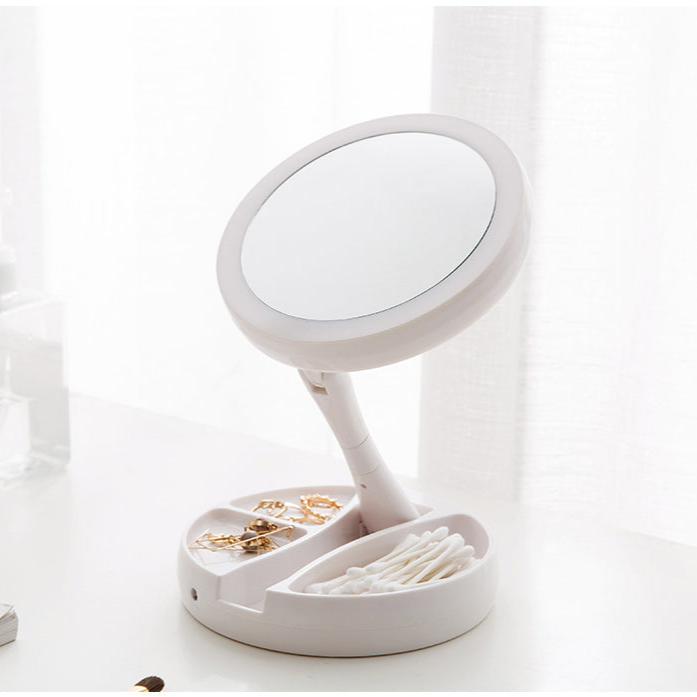 Le pied du miroir dispose de deux espaces de rangement pour des petits objets comme des boucles d'oreilles, des rouges à lèvres, etc., offrant ainsi une solution pratique et bien organisée