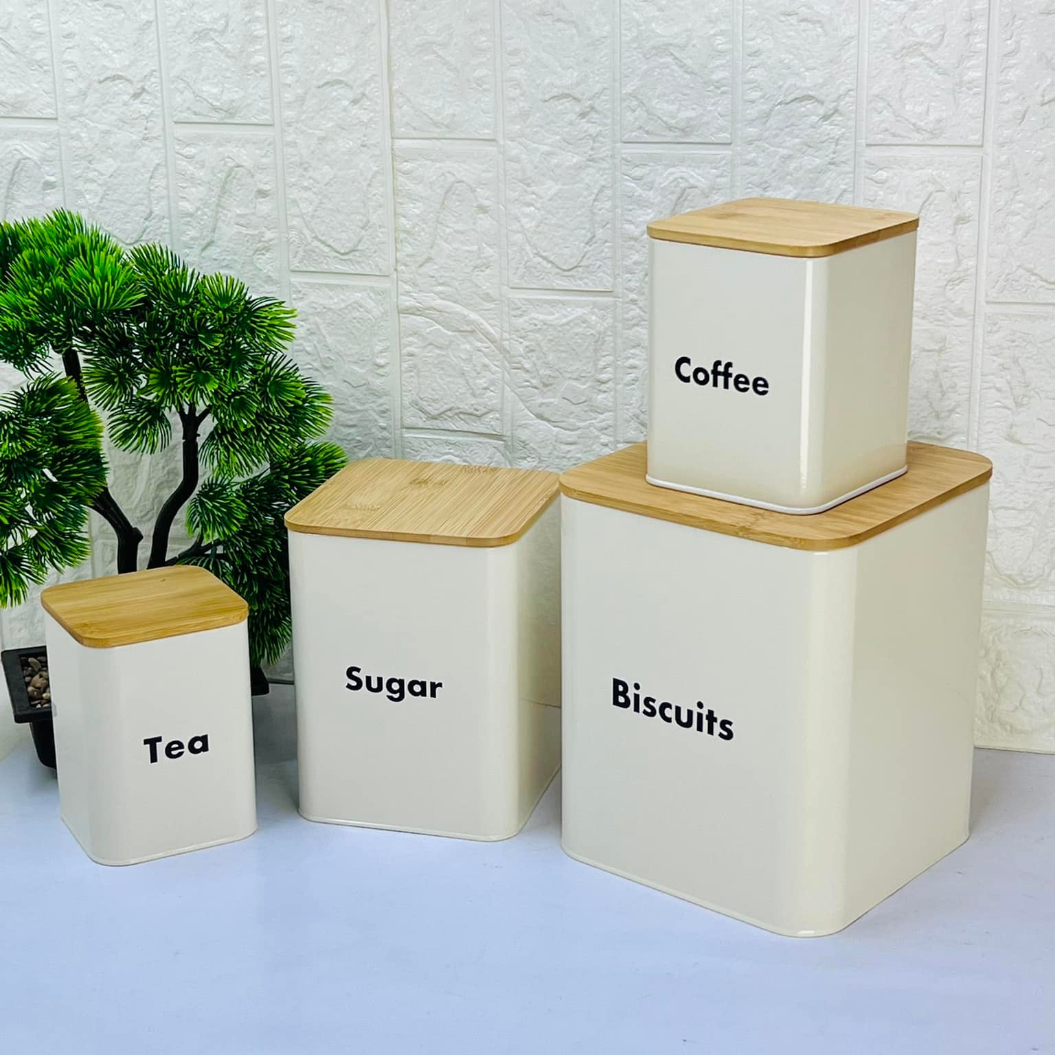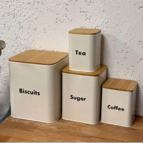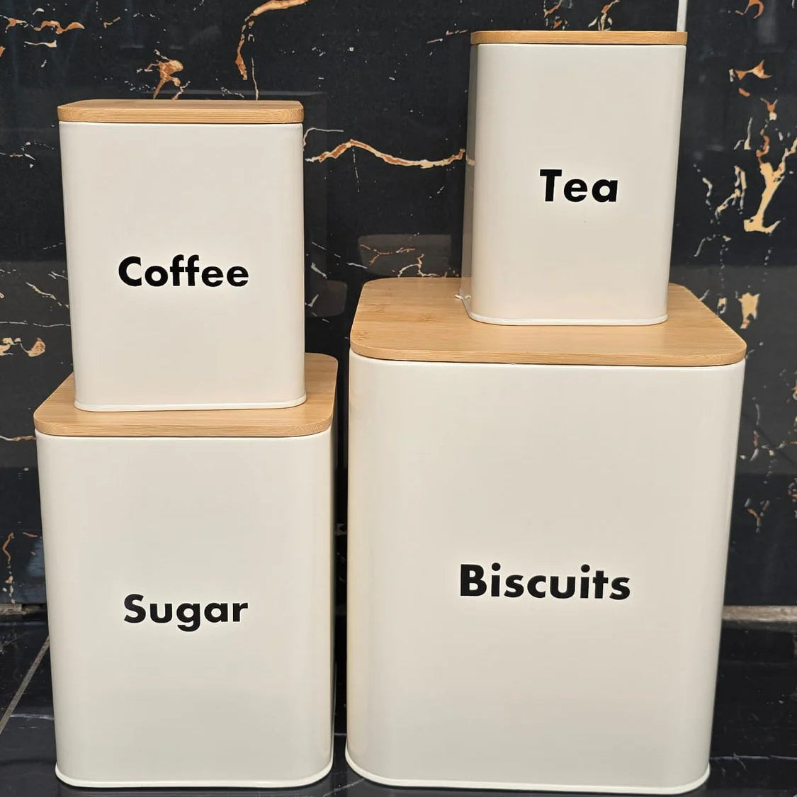 🫖☕ Set de boîtes de rangement cuisine – Tea / Coffee / Sugar / Biscuits