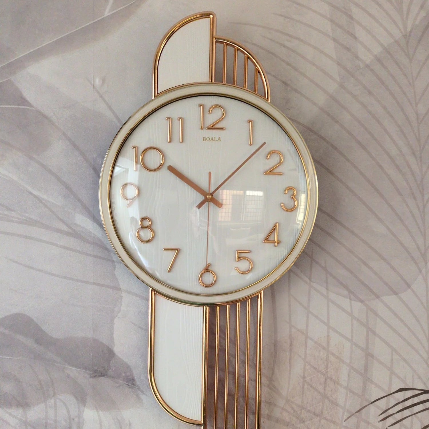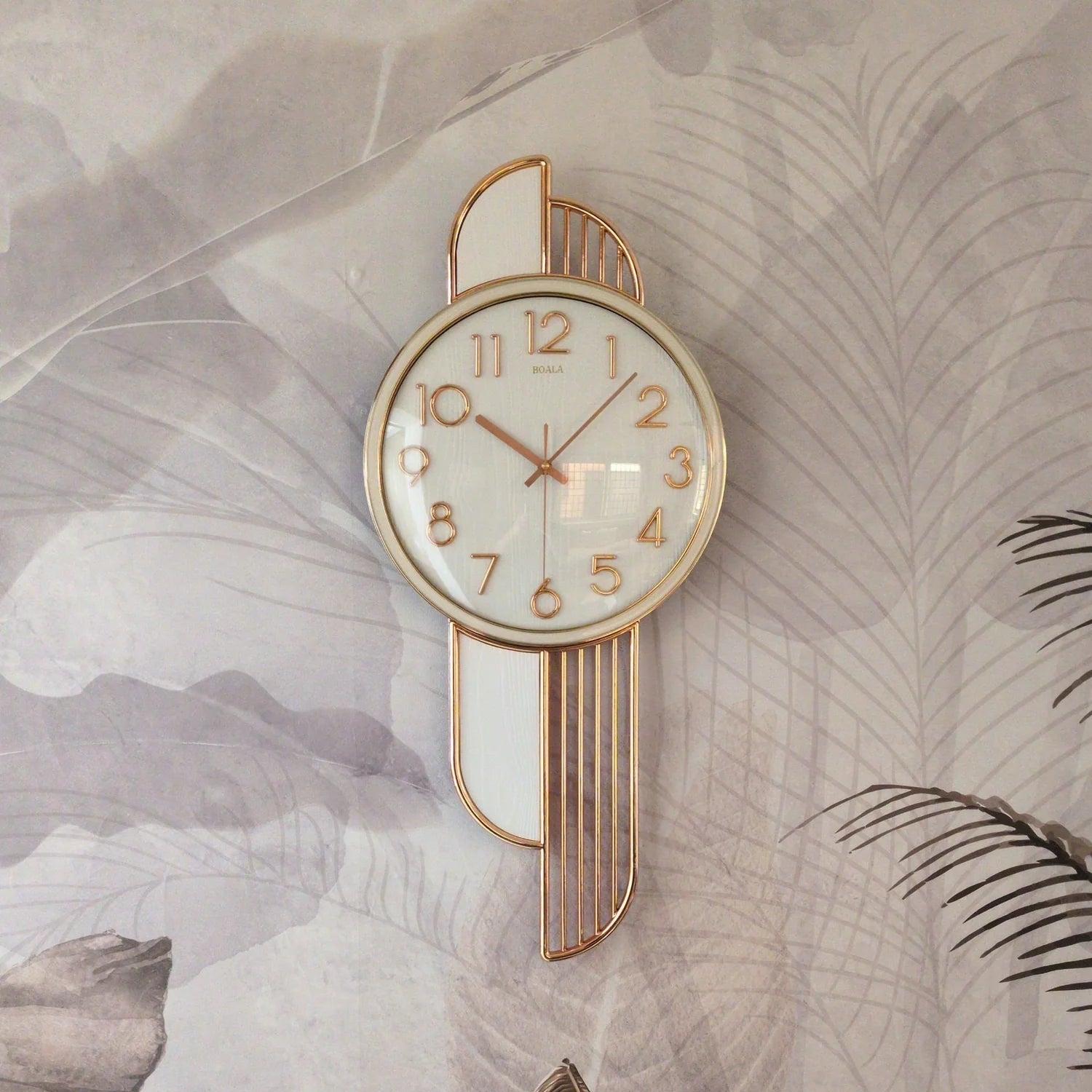 Sublimez votre intérieur avec cette horloge murale Art Déco, conçue pour devenir une véritable pièce maîtresse dans votre salon, votre entrée ou votre espace de vie. Son cadran rond, sublimé par des chiffres et aiguilles rose gold, s’intègre parfaitement dans les décors modernes, luxueux ou minimalistes.