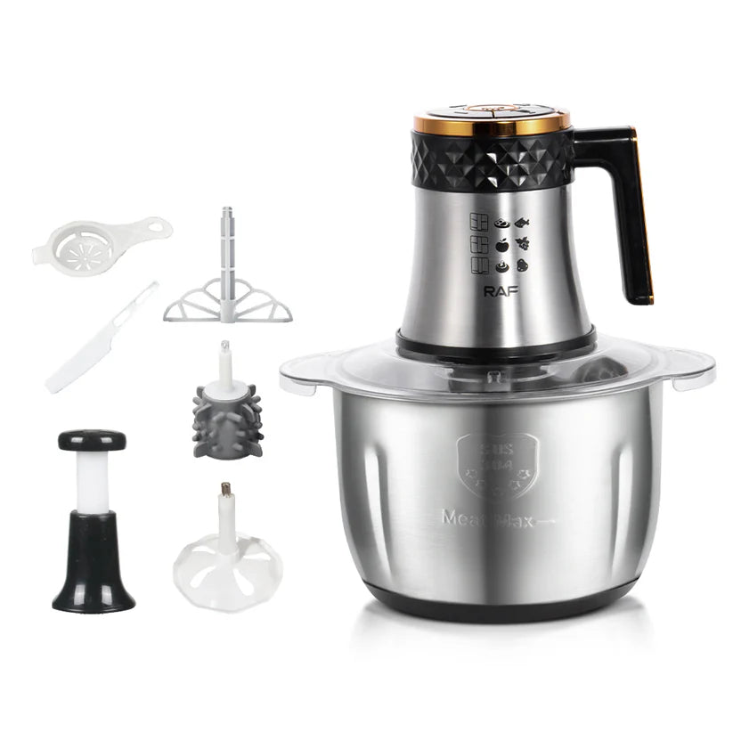Conçue pour une utilisation domestique et professionnelle, cette machine combine mixeur, hachoir et cuiseur électrique en un seul appareil élégant et puissant 🔌.