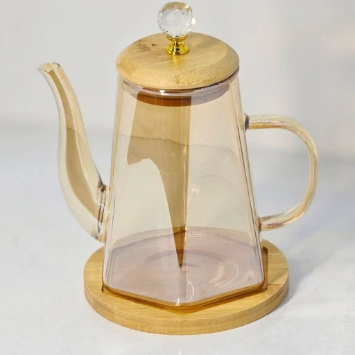 🫖 Théière en Verre Borosilicate avec Couvercle en Bois