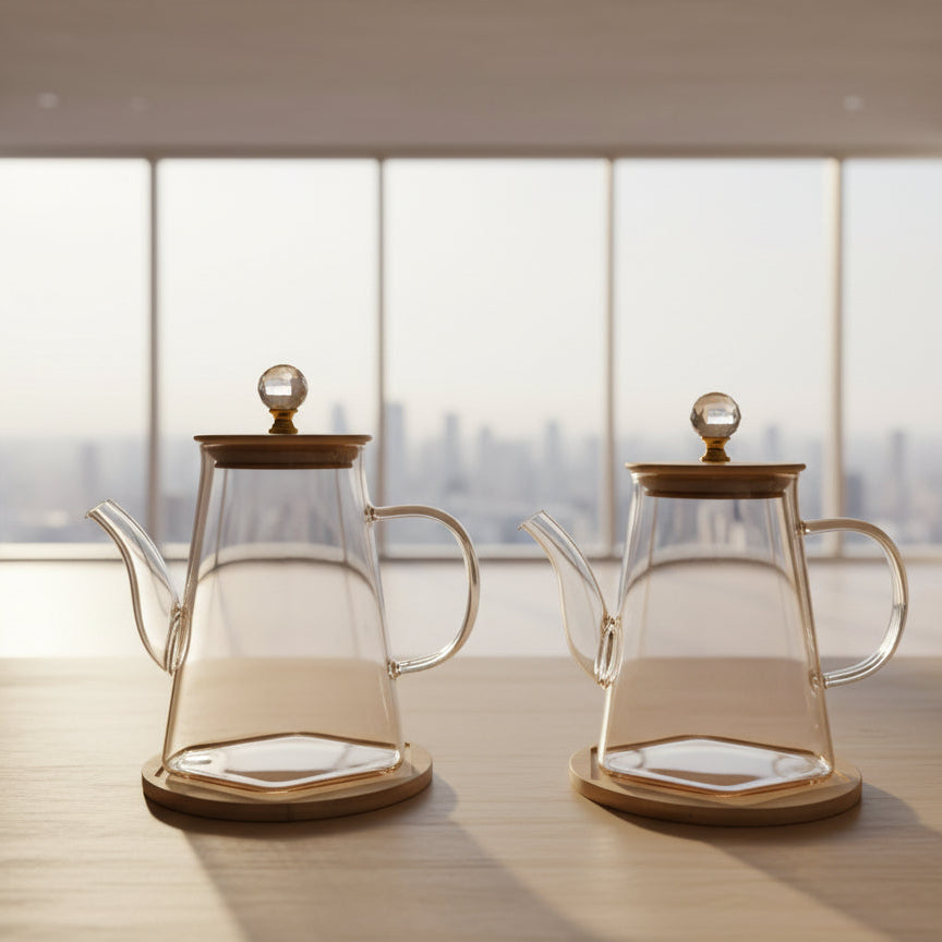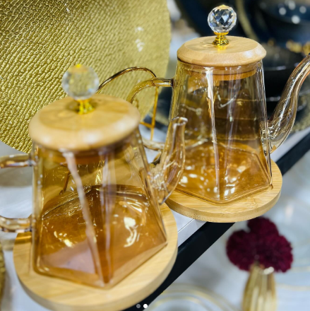 Sublimez vos moments thé ou café avec cette théière premium fabriquée en verre borosilicate résistant à la chaleur. Son design géométrique moderne, associé à un couvercle en bois naturel surmonté d’un bouton cristal, apporte un style luxueux et raffiné à votre table.