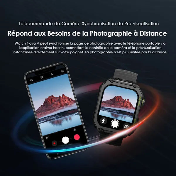 Watch Nova V peut synchroniser la page de photographie avec le téléphone portable via l'application oraimo Health, permettant le contrôle