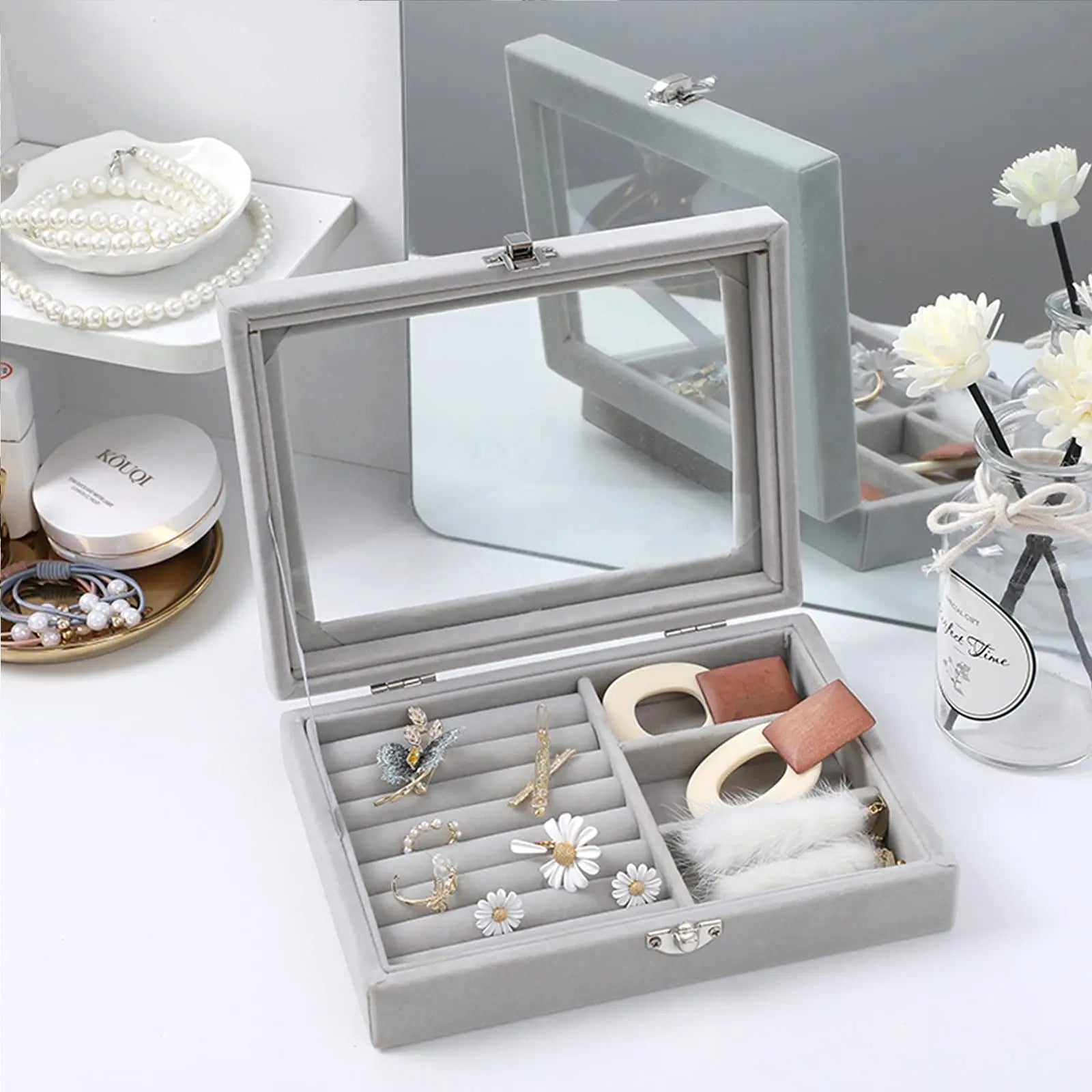 Couvercle en verre transparent pour visualiser facilement vos bijoux tout en les protégeant.