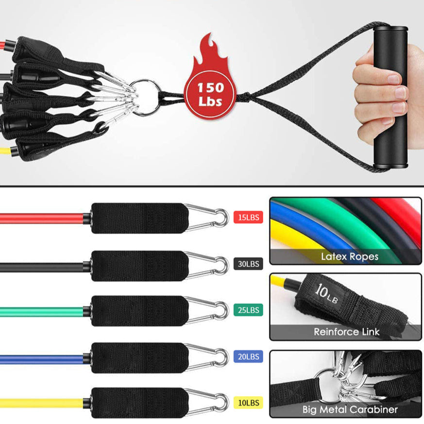 5 niveaux de résistance (10 à 50 lb), combinables pour jusqu’à 150 lb, adaptés à tous les niveaux.