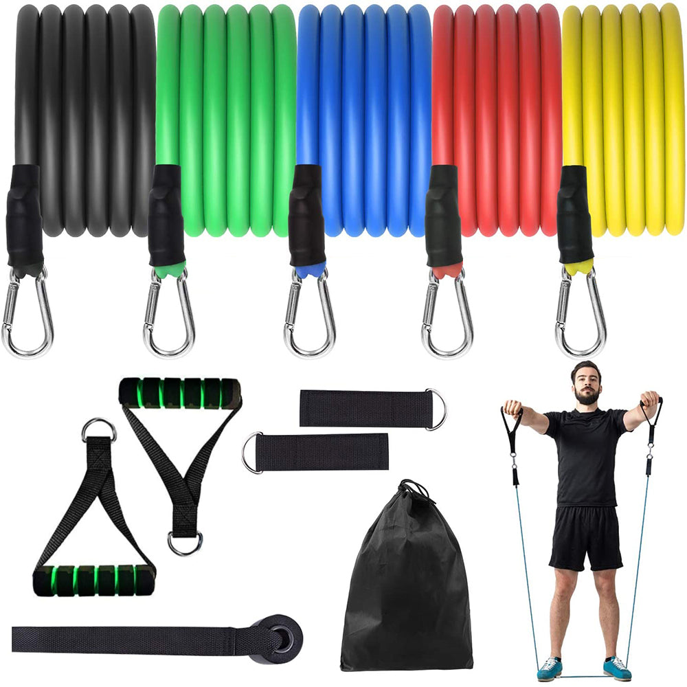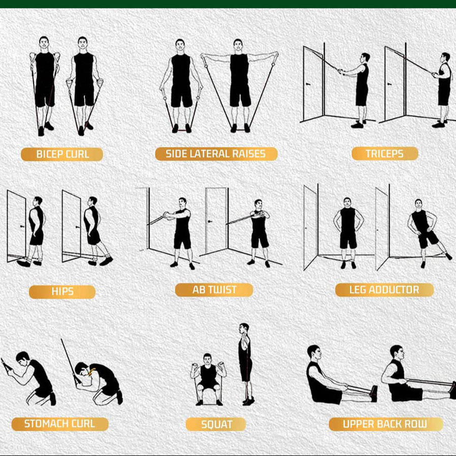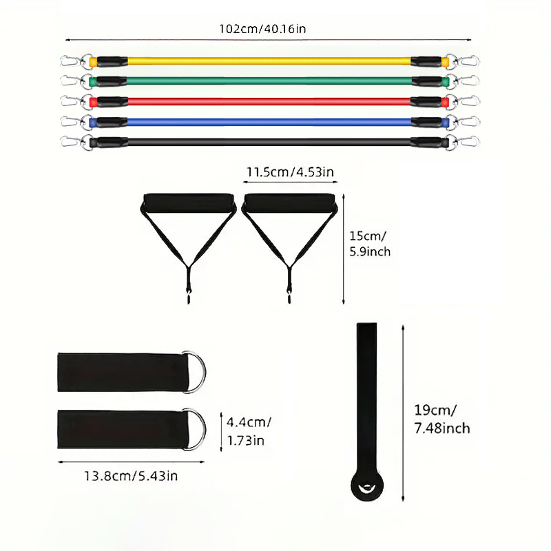 Latex naturel, poignées antidérapantes, boucles en acier inoxydable et ancrage de porte doux pour un entraînement sécurisé.