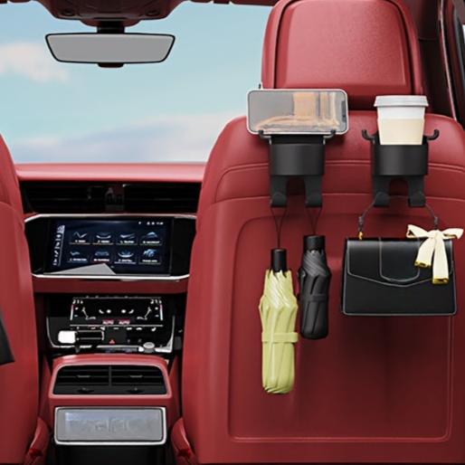 Équipé de crochets doubles adaptés à différentes épaisseurs de siège, idéal pour placer des tasses ordinaires (comme des tasses d'eau ou du thé au lait), facilement accessibles.