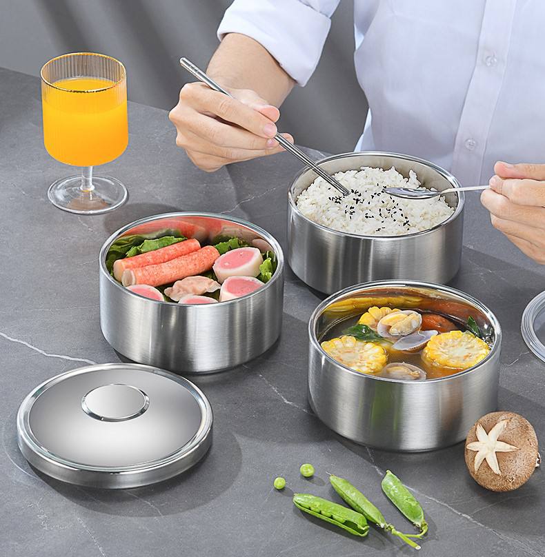 Gardez vos repas frais, chauds et bien organisés où que vous soyez grâce à cette boîte repas en inox à plusieurs compartiments.